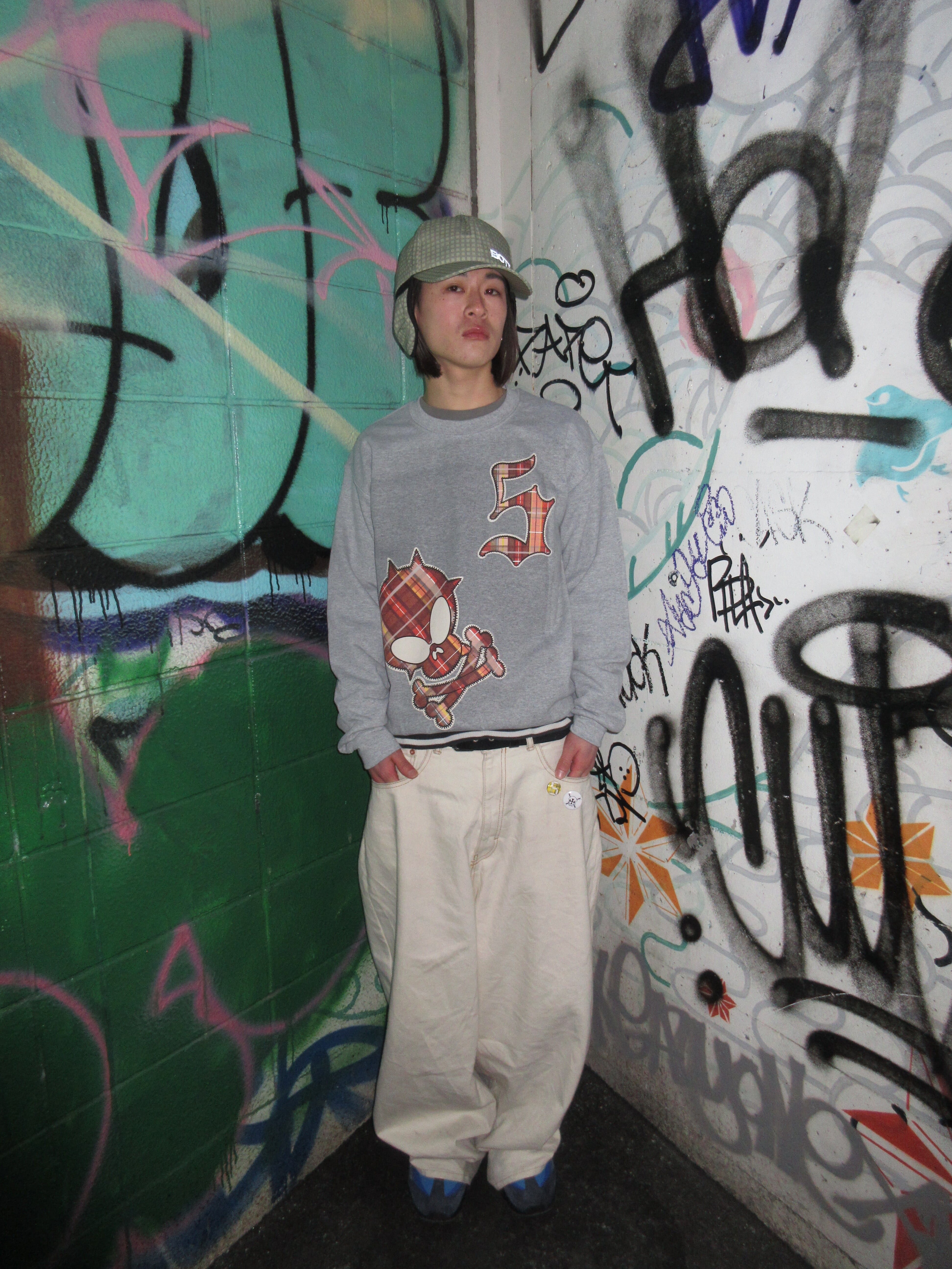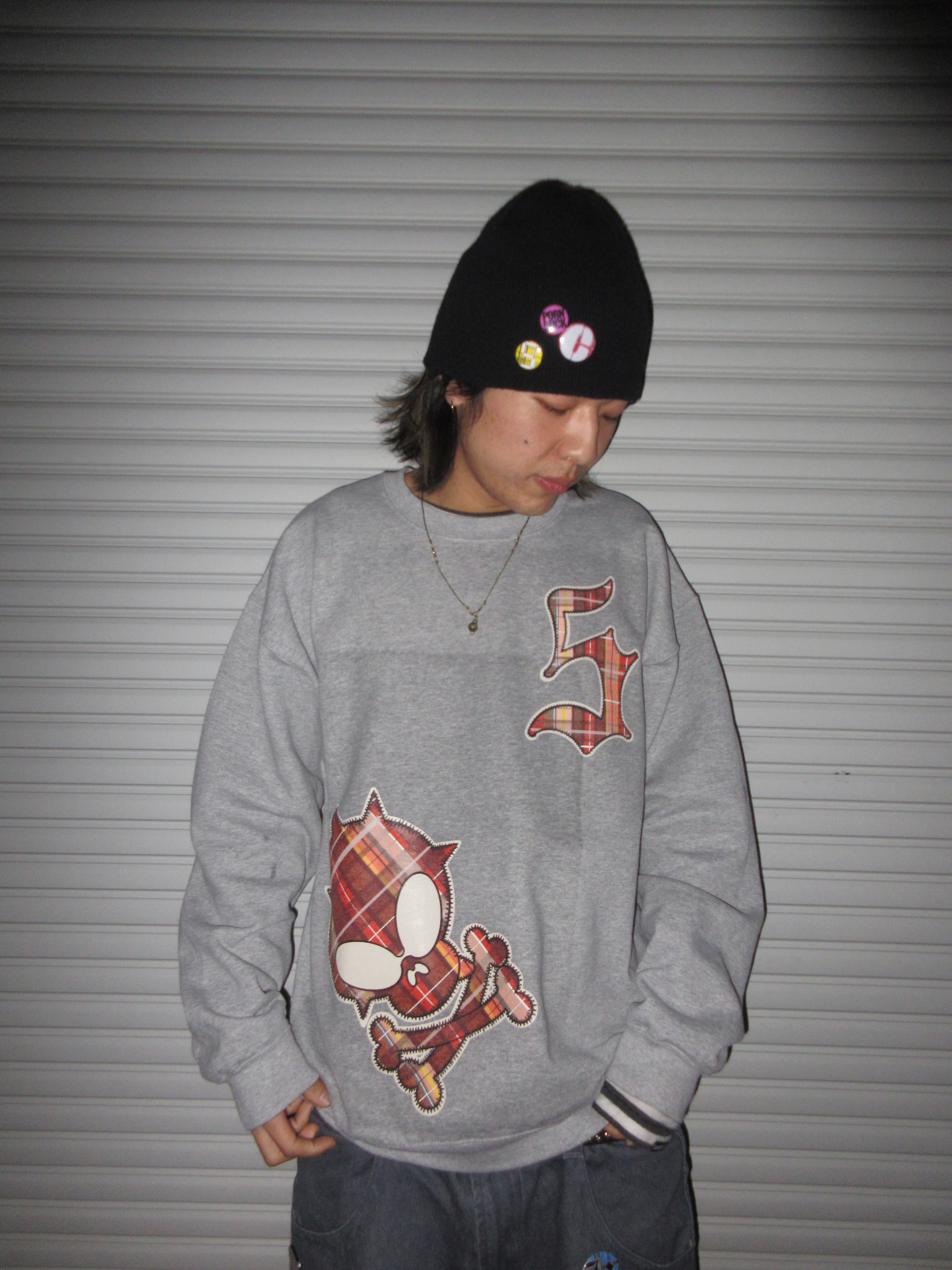 5UCKの秋冬新作として今回はスウェットを作成しました。2000年代初頭っぽい雰囲気のチェックと、自分の好きな可愛さとスワッグを詰め込んだ5UCKらしいデザインに仕上げました。ボディも良い色のグレーなのでめちゃくちゃ使える1枚になってます。超絶自信作です。