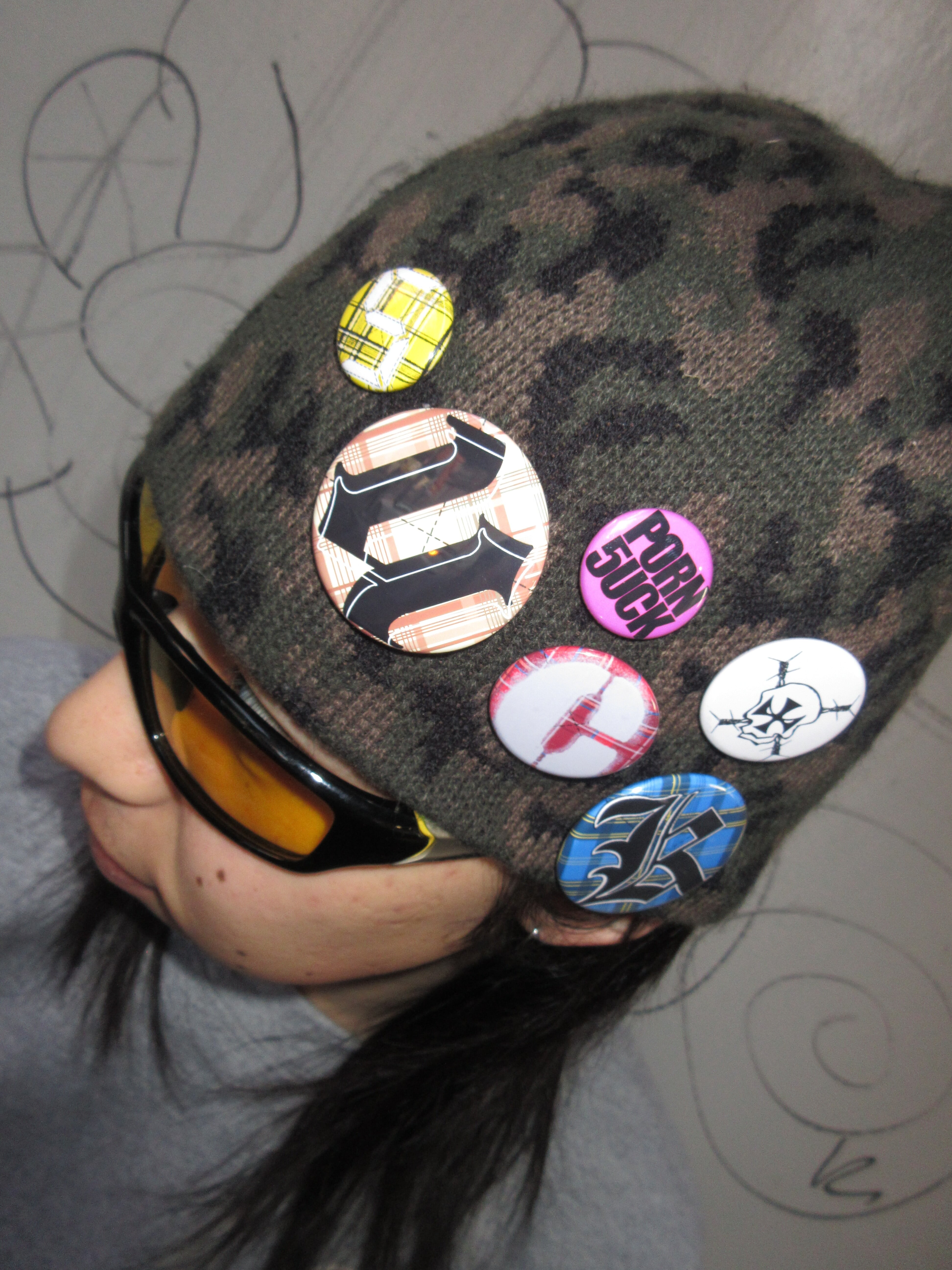 今回の自分の中でのテーマとして"チェック"を取り入れたいというイメージがあったので、それと古着っぽいイカしたフォントを組み合わせて全部手描きで作成しました。サイズ感や色味にもこだわり、どんな格好の日でも取り入れやすくなってます。ビーニーやパンツ、カバンに付けまくっちゃってください。