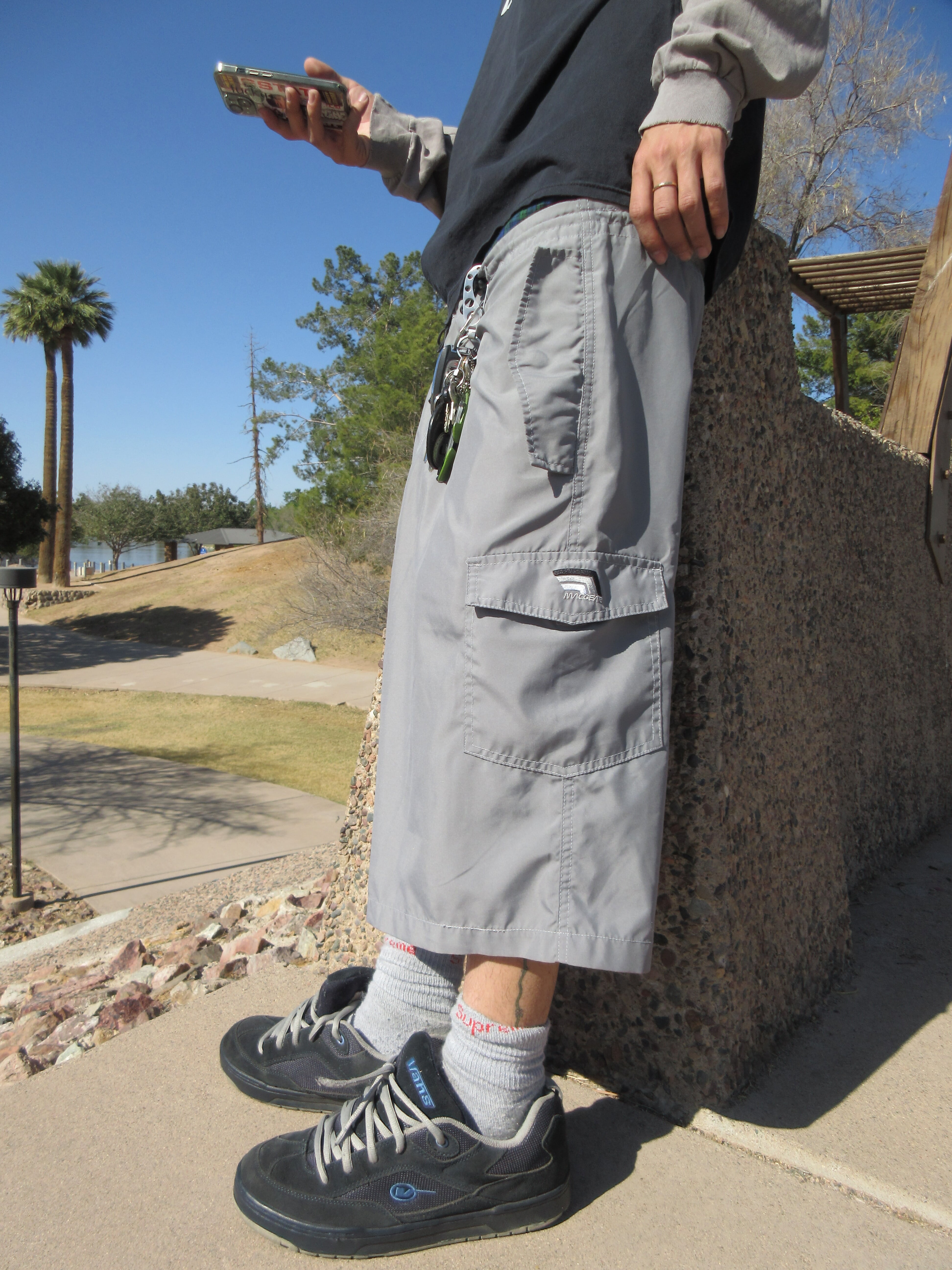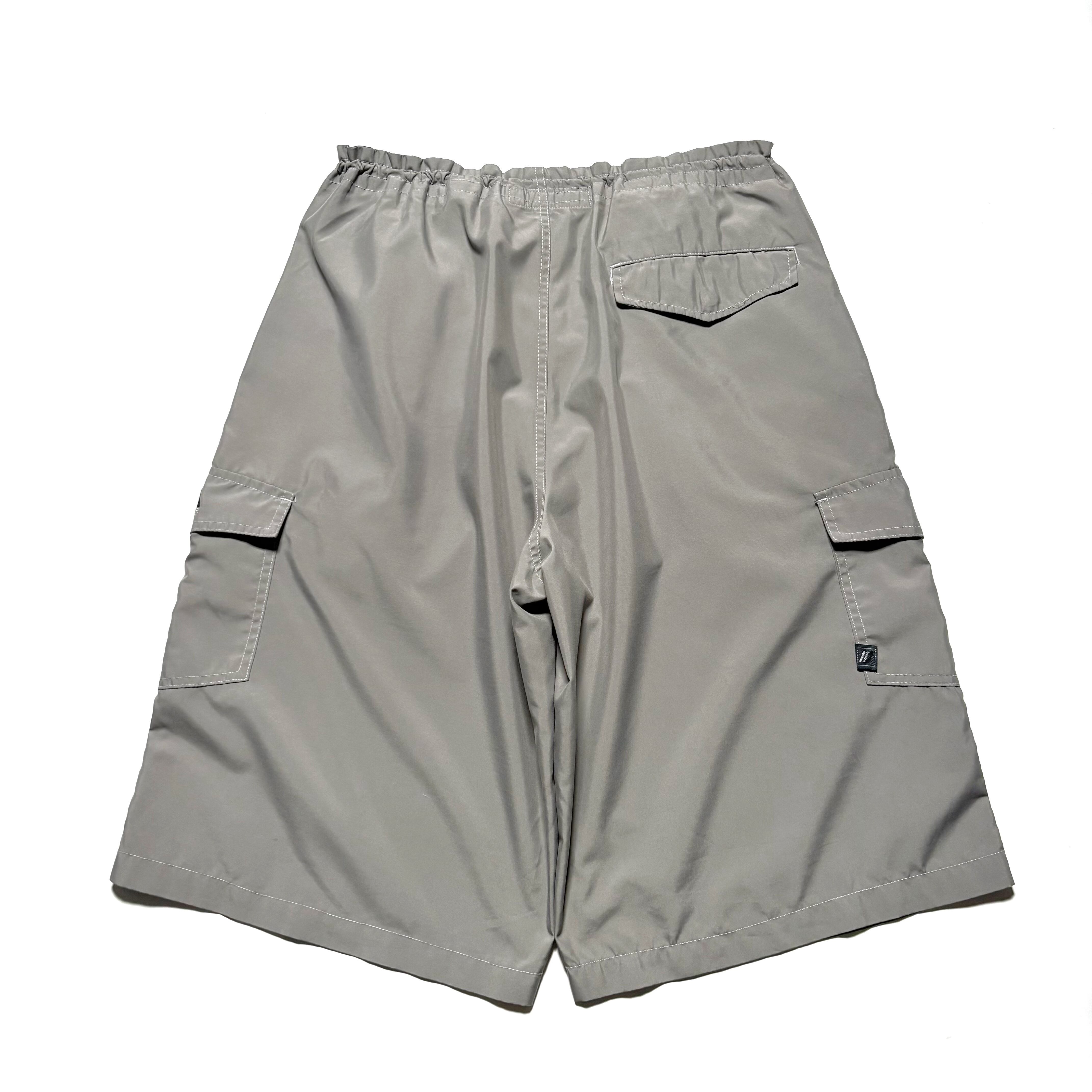 スペースグレーの色味と、マックギアらしいギミック感の相性が最高なレイヴスタイルのカーゴショーツ。サイズ感もしっかりバギーかつ丈も超絶長く、色味も相まって無限に履ける最強の1本。