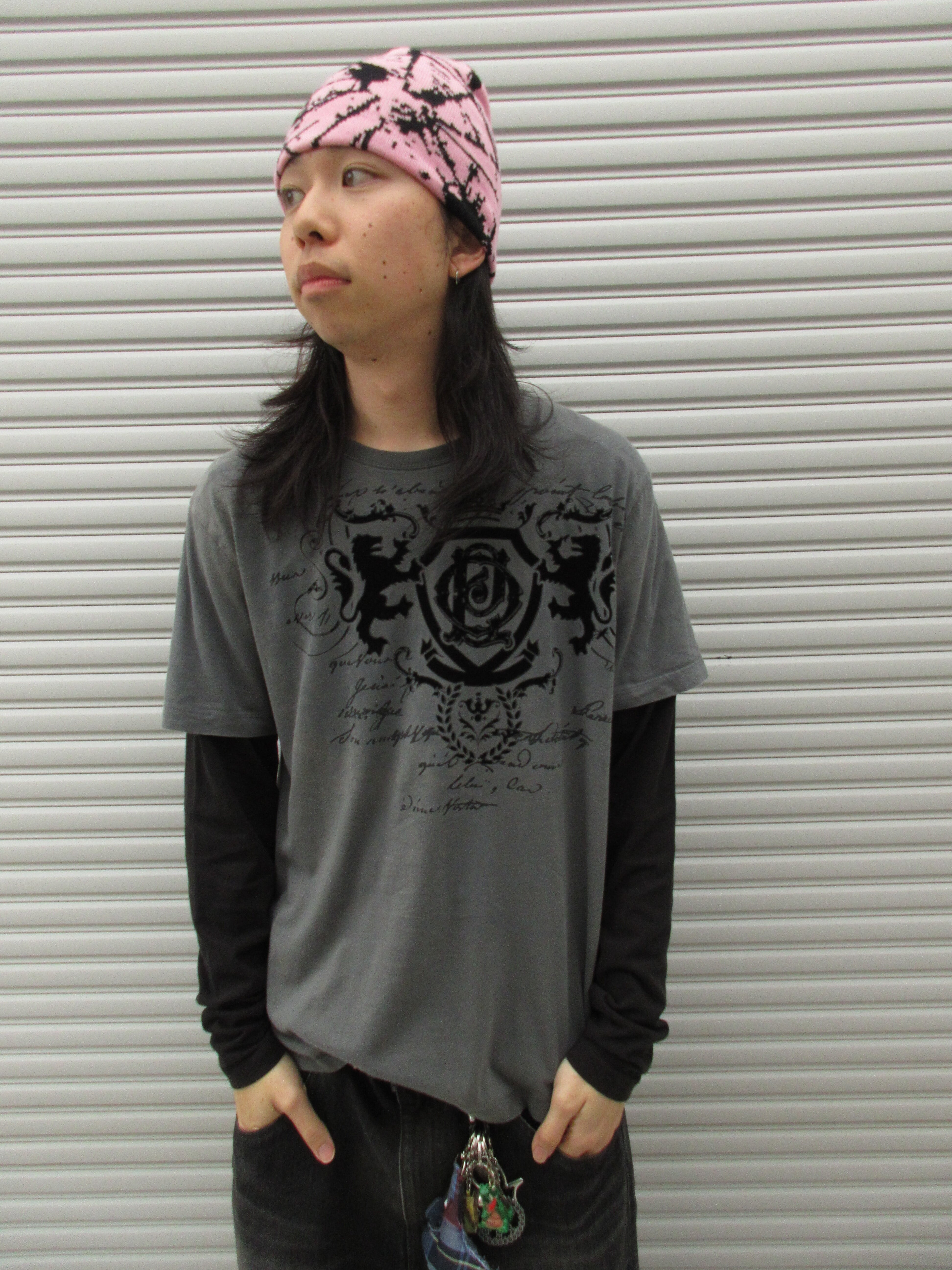 Y2Kのエッセンスをこれでもかと詰め込んだようなNOBOのレイヤードTee。グレー×ブラックというカラーリングの時点で最高なのに、プリントもスワッグ全開で◎。春先1枚で決めちゃいましょう。