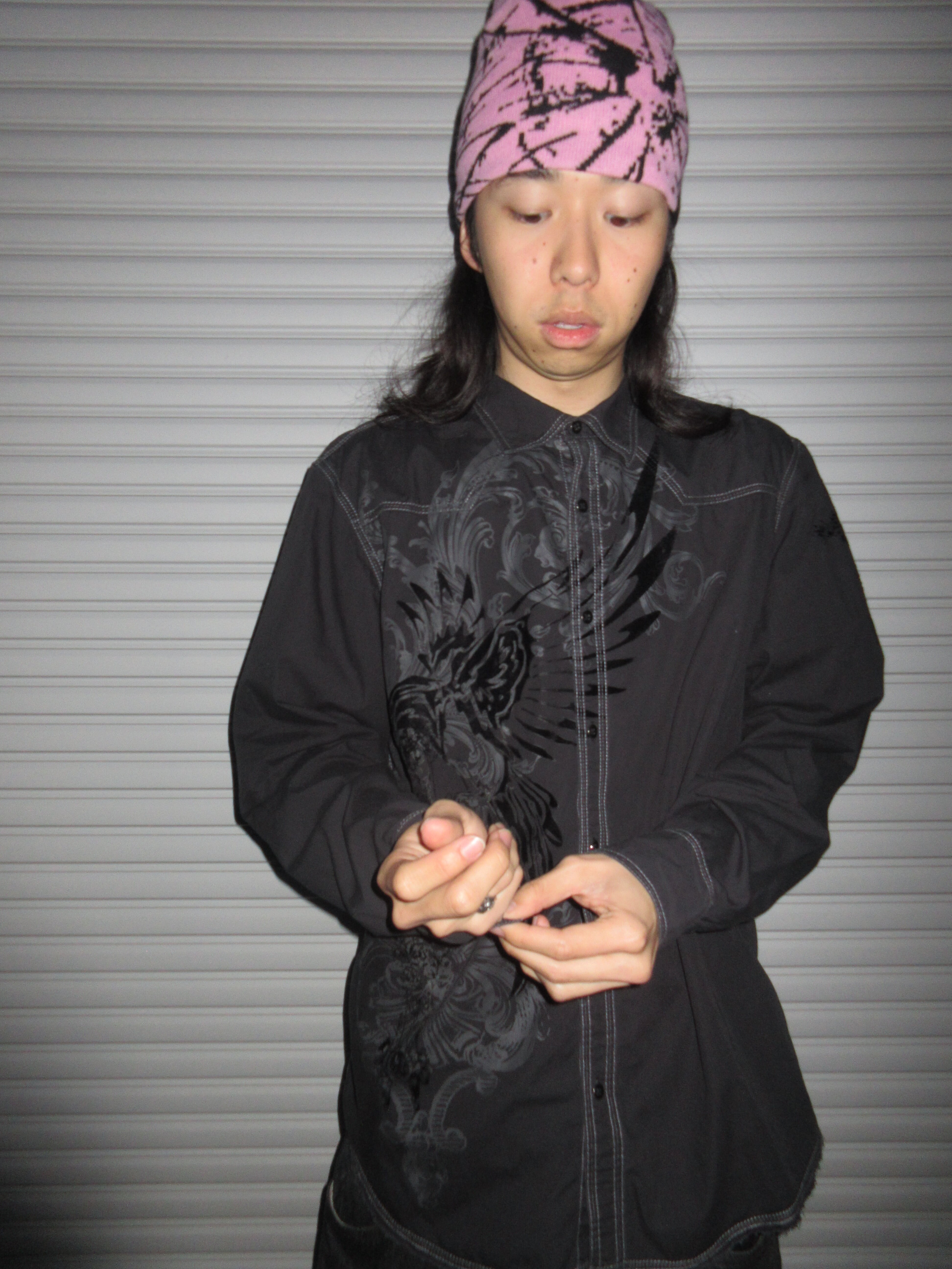 スワッグ全開、ブラック1色のシックすぎるシャツ。サイズ感もゆったり目で最高、でっかいサウスポールのショーツとかと合わせてそっち系で着こなすのが良さそうです。