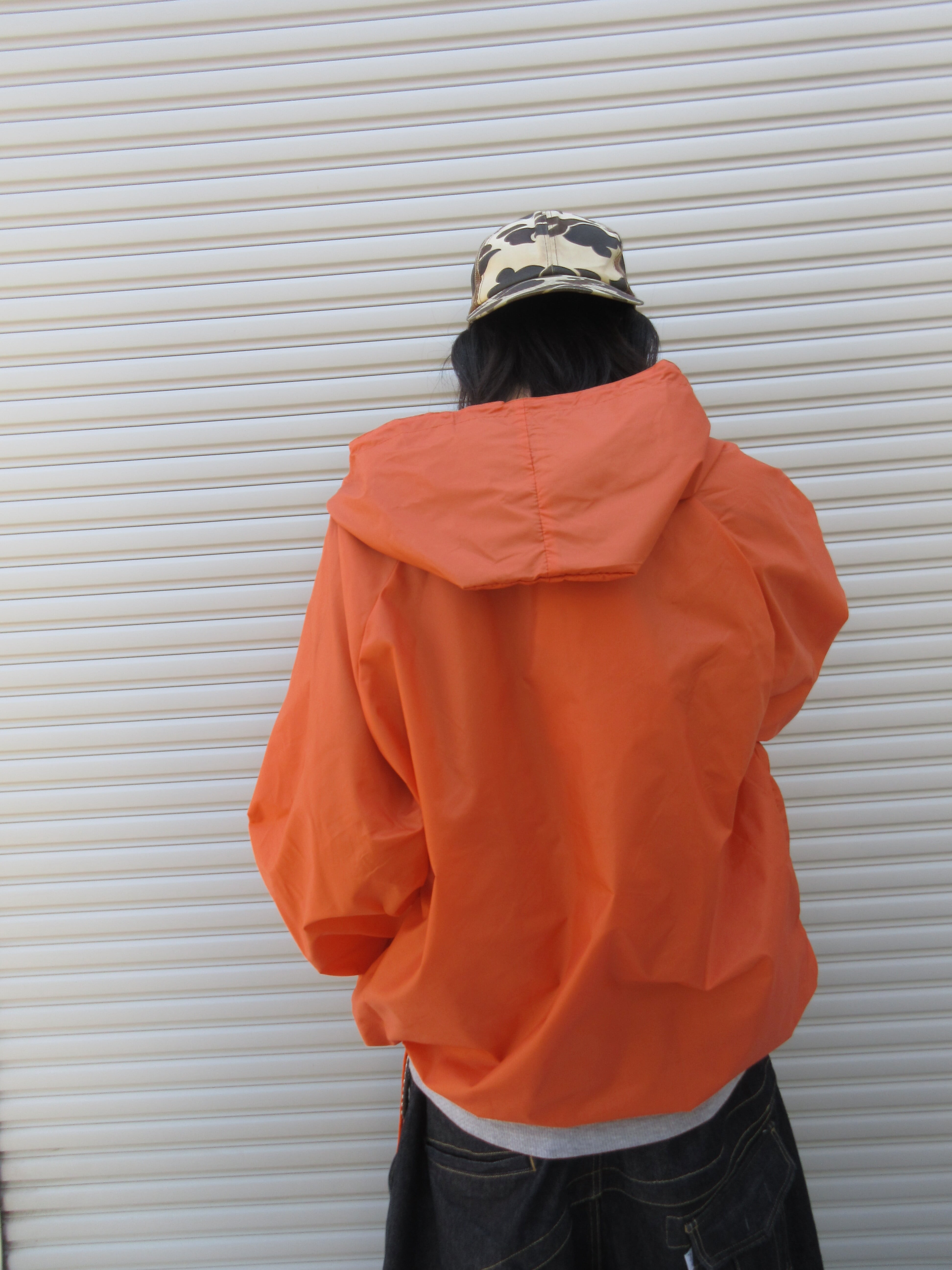 質のいいナイロンとパキッとしたオレンジ、ゆったりとしたサイズ感が使いやすさ抜群のOld GAPのナイロンアノラック。しかもパッカブルしようでバックに忍ばせておくこともできる春に必須のアイテムです。