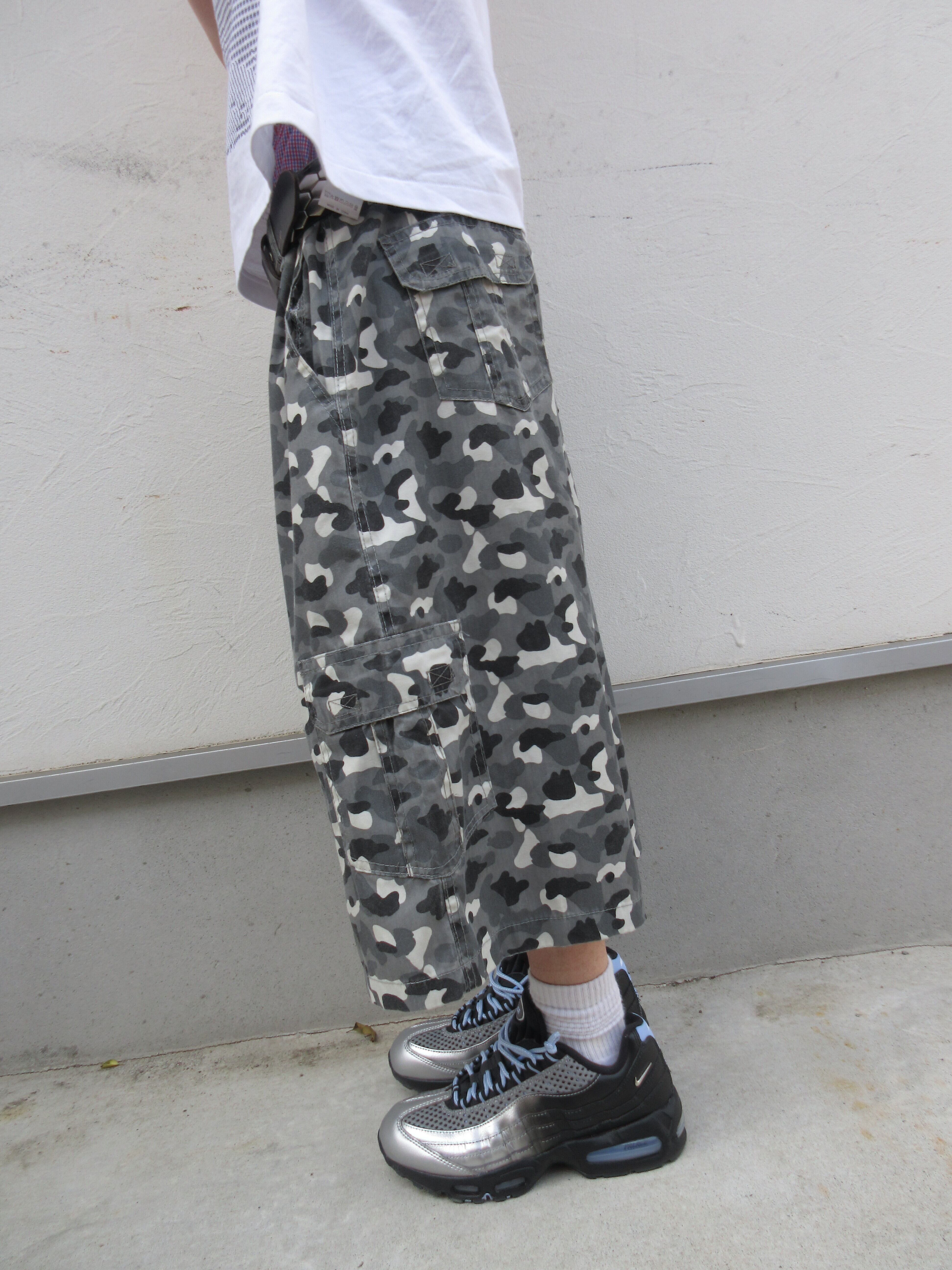 モノトーンカモ×超バギーロング丈ショーツという絶対にハズレない組み合わせのありがたい1本。カモ柄もファッション性が高く合わせやすさもバツグン、さらっとしたコットン素材なので夏場もめちゃくちゃ履けそうです。
