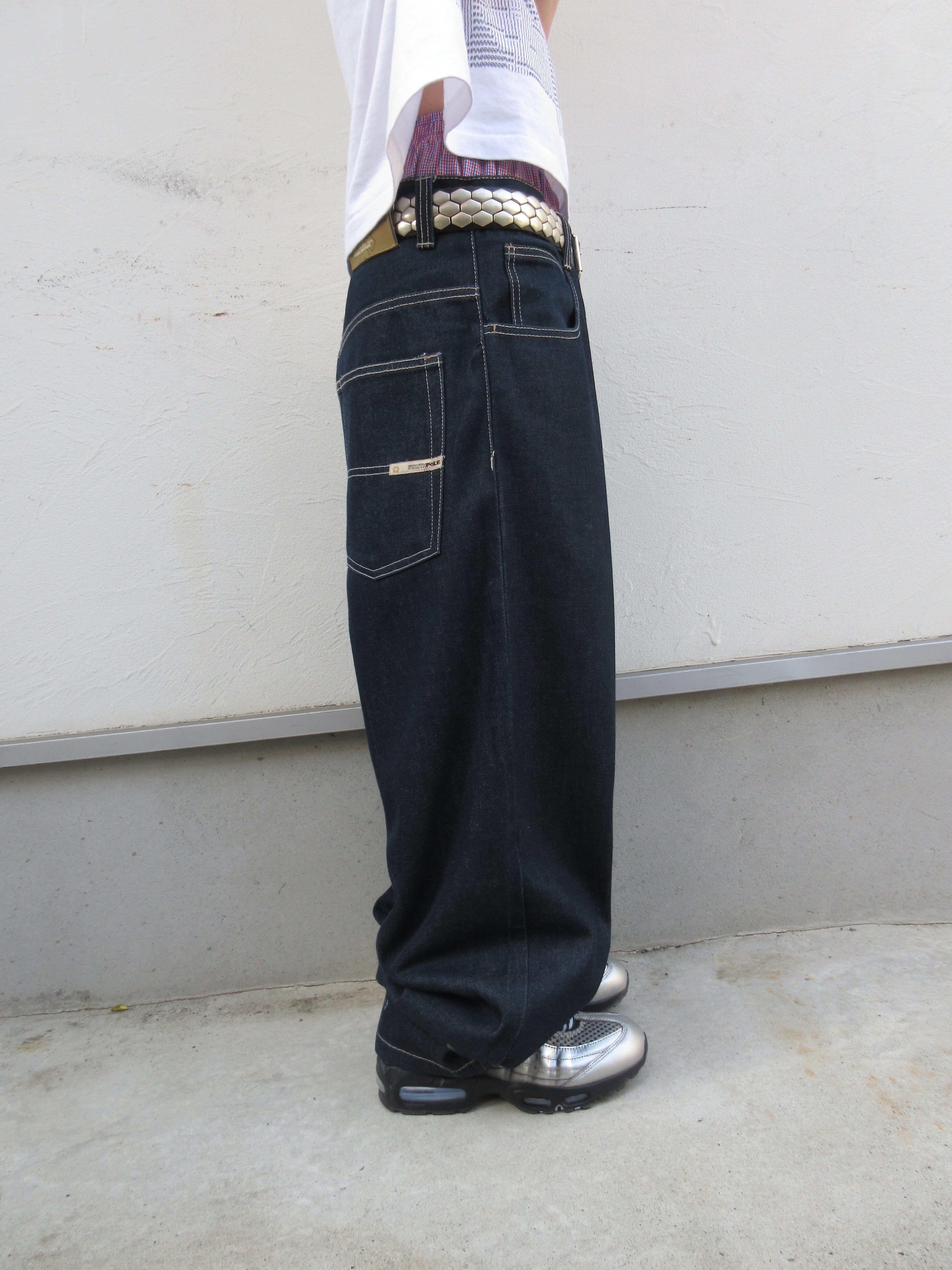 Greenyでは珍しく割と細めなSOUTHPOLEのデニムですが、レングスがめちゃくちゃ長く、色味も濃紺中の濃紺で履いた時のシルエットと雰囲気がどエロい1本。アメリカで写真撮ってる時良すぎてめちゃデカい声出ました。