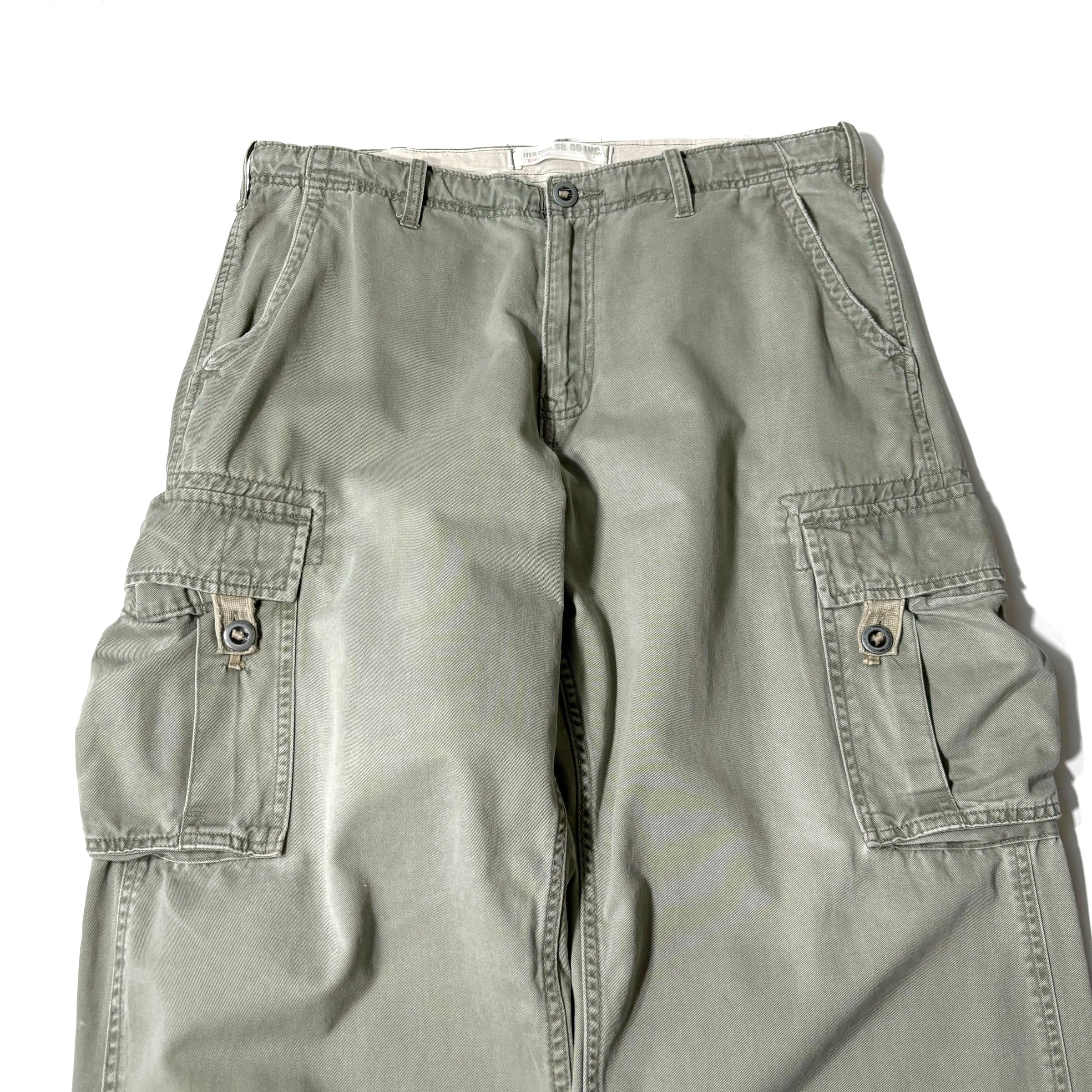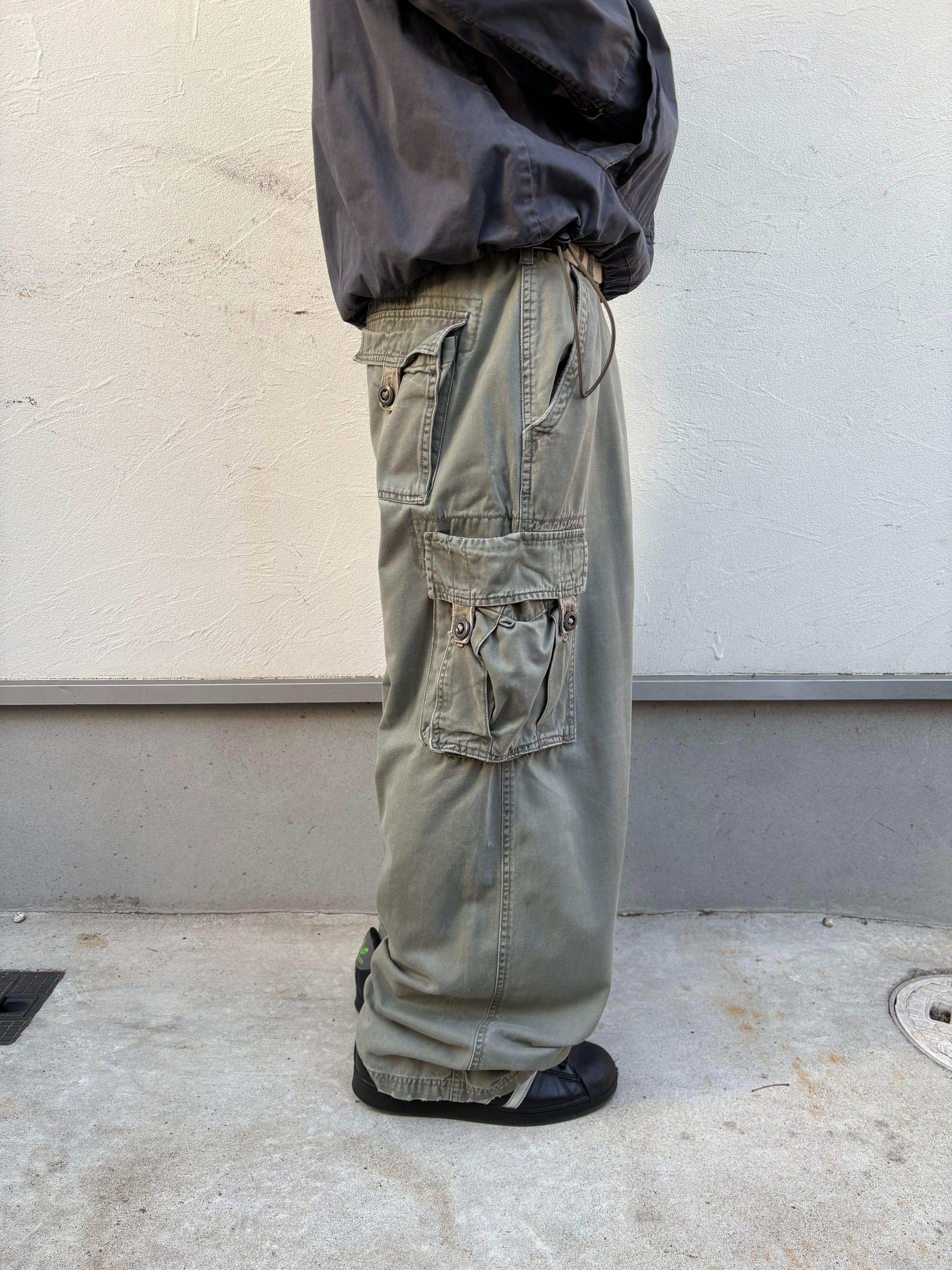 僕らが1番好きな頃のNO BOUNDARIESのバギーカーゴ。やっぱりこの頃のNOBOが作るパンツは本当にハズレがないですし、何よりクオリティが高すぎます。バック、カーゴポケットはまさに軍モノの仕様でボタン開閉式、メタルボタンが男らしい雰囲気のいいアクセントになってます。サイズ感も超バギーで裾幅28cm。最強のカーゴです。